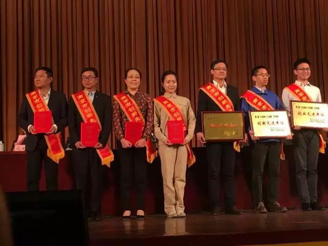 图1:张旭苹教授作为获奖代表上台接受了省市领导的颁奖