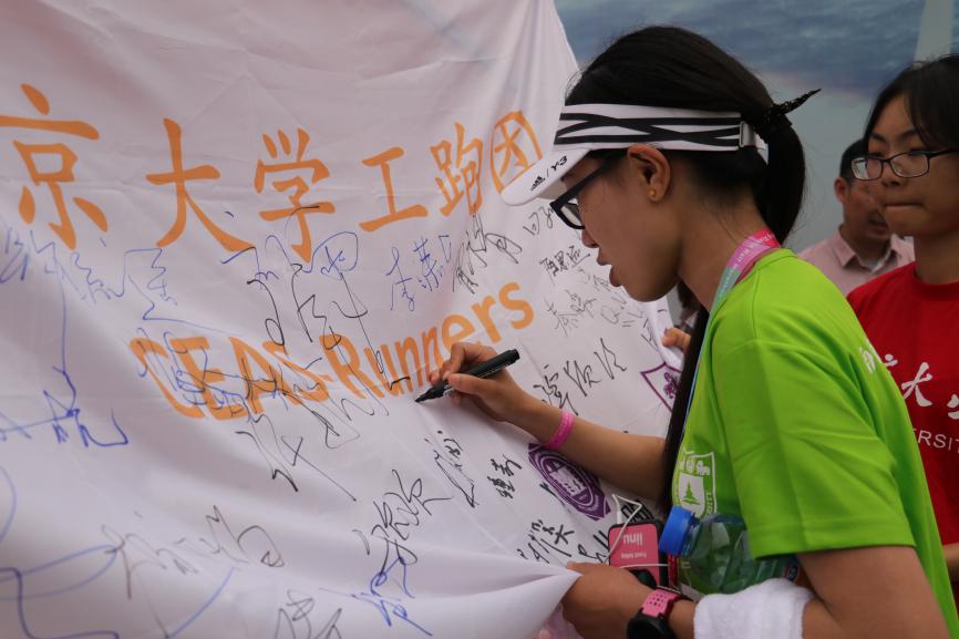 图2:运动员在工跑团旗帜上签名