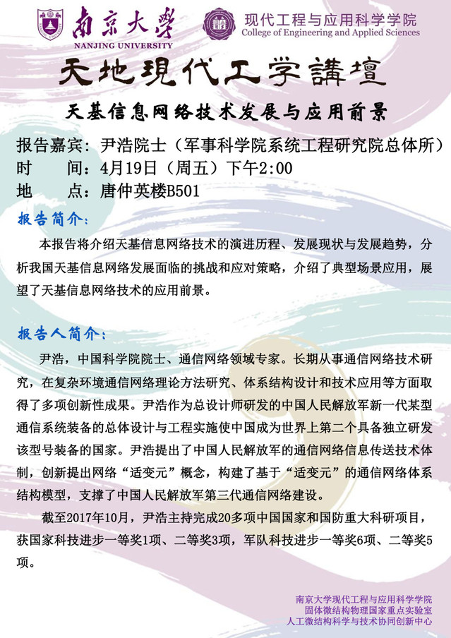 报告题目: 天基信息网络技术发展与应用前景