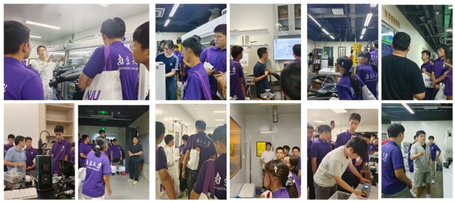 全体新生被分为A、B、C、D四组,每组在两位朋辈导师的带领下,详细参观十一个实验室:李涛老师的超构光子与集成技术实验室,袁洪涛老师的界面物理与界面电子学课题组,祝名伟老师的生态超构材料实验室,陈延峰、卢明辉、颜学俊老师的声学超材料与检测技术实验室,刘一杰老师的储能材料与技术实验室,姜硕星老师的核酸纳米技术实验室,任鑫坤老师的生物酶化学与合成生物学实验室,权浩诚老师的仿生材料实验室,胡伟老师的液晶光子学实验室,谭海仁老师的能源光电材料与器件实验室,胡小鹏老师的现代工程与未来技术实训中心。