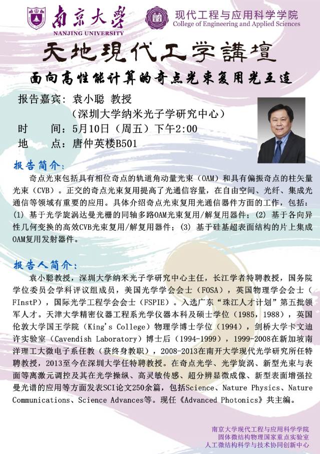 报告人:袁小聪,深圳大学纳米光子学研究中心主任、教授