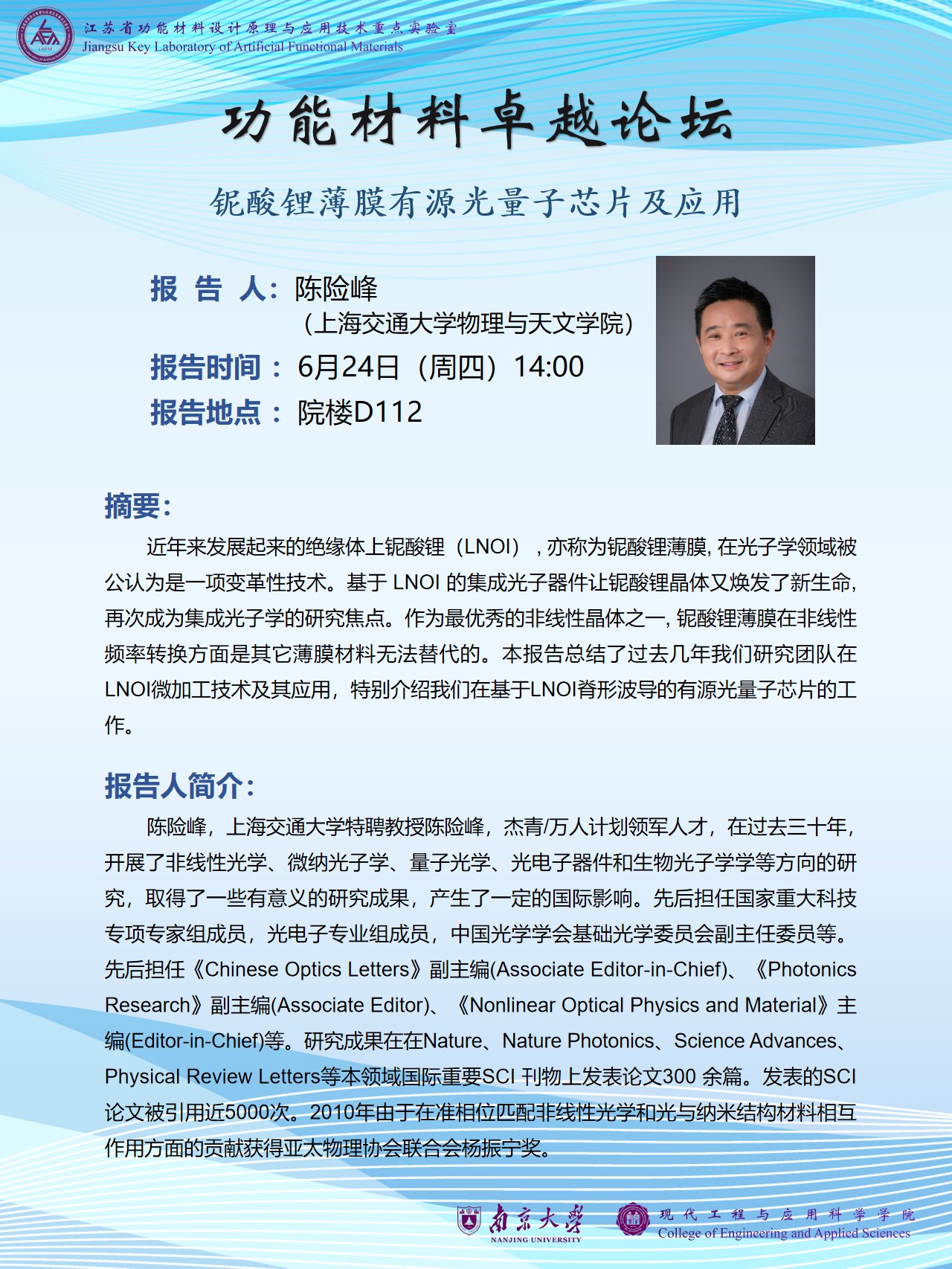 【功能材料卓越论坛】6月24日星期四上海交通大学陈险峰教授报告