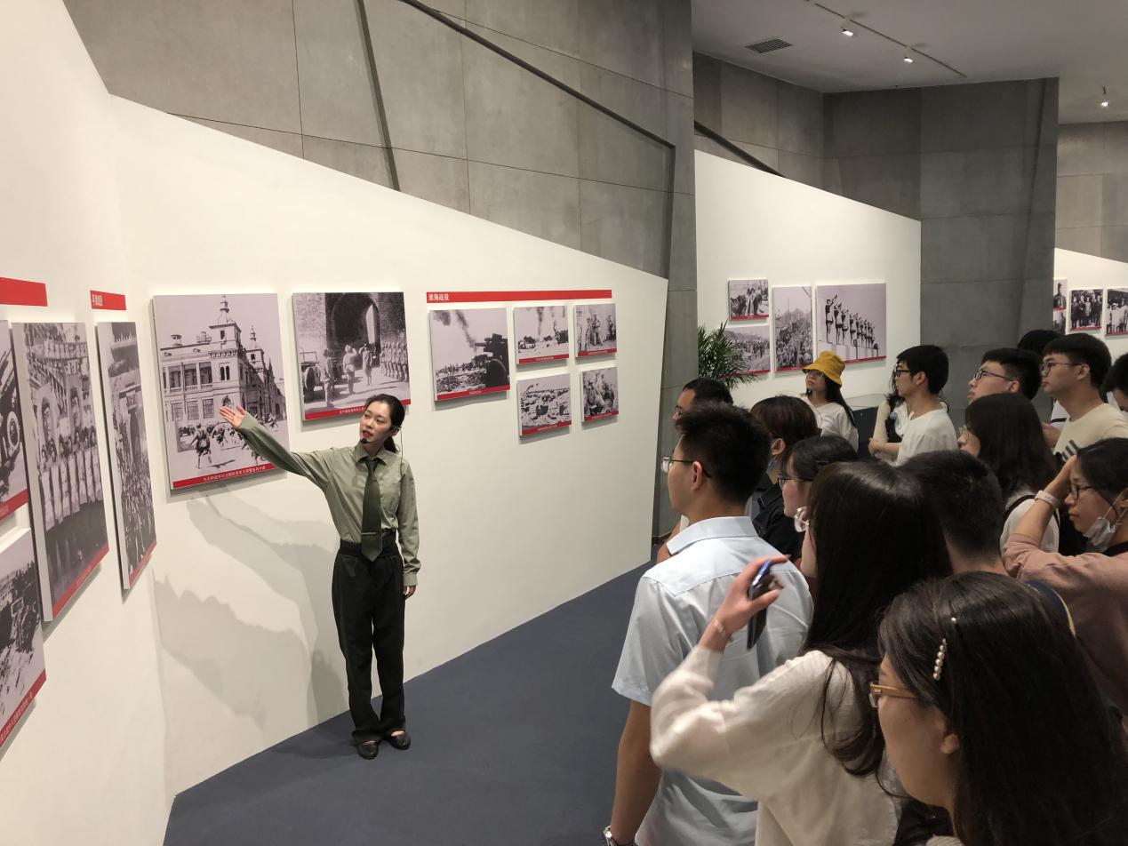 上午11时左右,同学们来到渡江胜利纪念馆。在毛泽东、朱德发布的《向全国进军的命令》文稿前,支部成员感受到了工业遗产是一座城市的历史记忆,它藏着几代人的梦想和奋斗痕迹,是一座城市不可或缺的历史积淀,无不承载着一段令人动容的悠悠岁月;在“三大战役”、渡江战役的态势地图前,支部成员再一次接受了革命历史知识的洗礼;在渡江战役支前民工的小推车前,同学们深刻感悟到人民群众是推动历史发展的根本力量的真理意义。整个参观过程,大家不时相互交流参观感悟,对同学们的革命精神培育和党性修养养成具有重要意义。