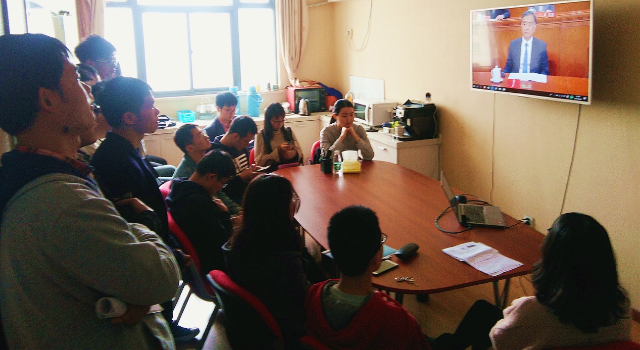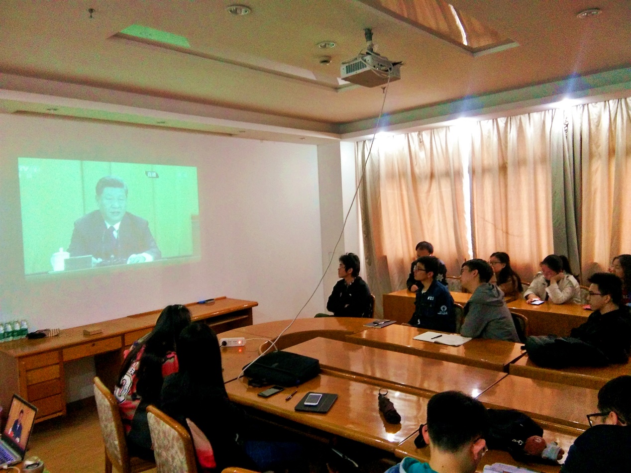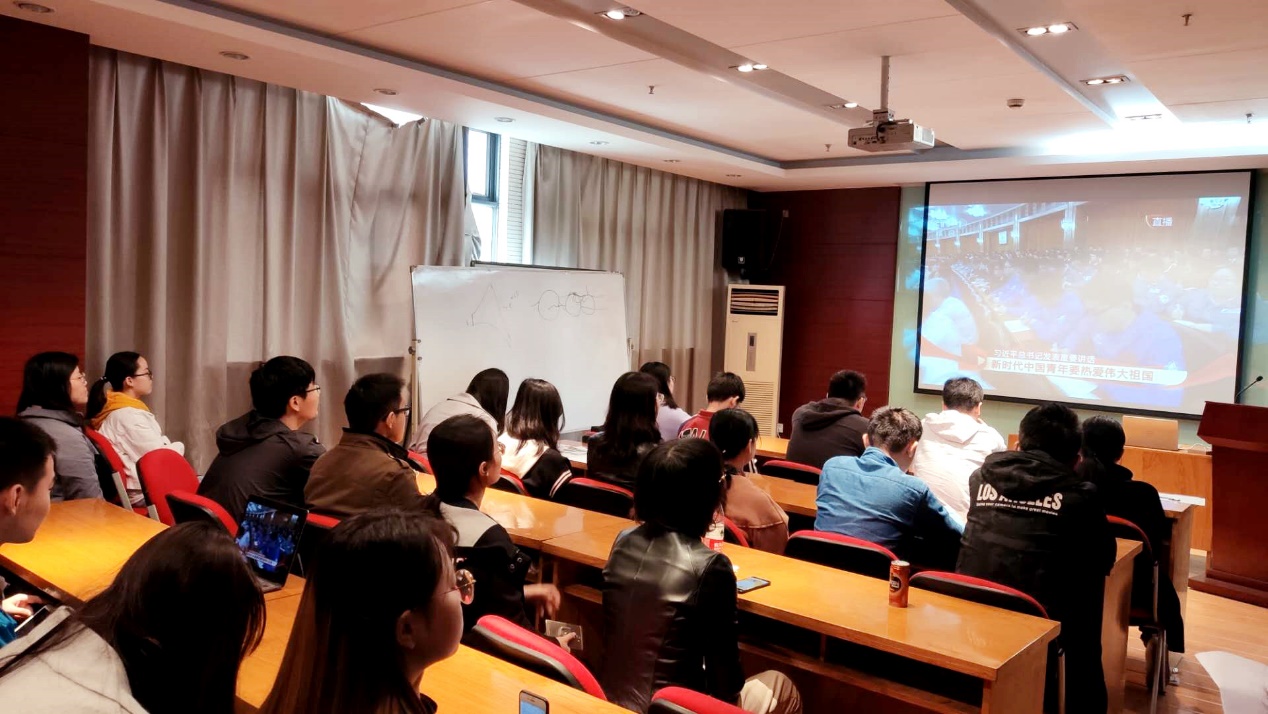 大会开始前,参加直播观看的师生陆续到达会议室,等待期间大家讨论着 “五四”运动对我国民主主义革命的重要意义,讨论着青年知识分子、广大人民群众在历史发展变革中的重要角色以及“五四”精神对我国青年成长、奋斗的指导意义,并积极期待着总书记的讲话。