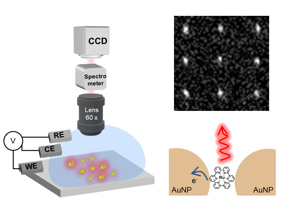 电化学发光(ECL)是一种依赖电化学反应来激发探针分子发光的技术。贵金属颗粒可作为典型的纳米电极,对其表面的ECL信号读取与分析可有效地表征其催化性能。然而,已有的单颗粒电化学发光研究还存在颗粒定位困难、等离激元效应不明、难以高通量检测等问题。