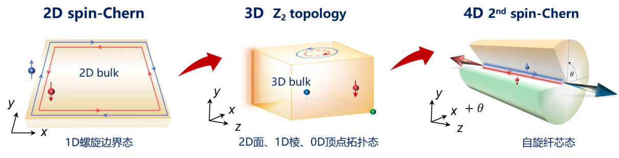 图1.从二维到四维声学拓扑态示意图。