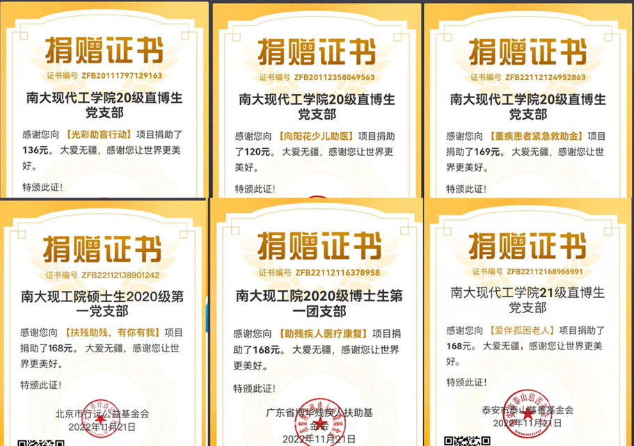2022年11月12日-19日,由betway88西汉姆联20级直博生党支部、21级直博生党支部、20级硕士生第一党支部与20级博士研究生第一团支部联合举办的双十一“促环保、助公益”活动(第三期)圆满结束。此次活动得到了betway88西汉姆联师生的大力支持,参与活动的全体师生不仅助力建设绿色南大,也为公益事业贡献了南大力量。