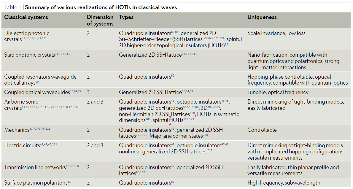 图-4.多种实现了高阶拓扑相的经典波平台。