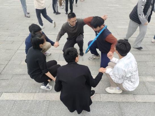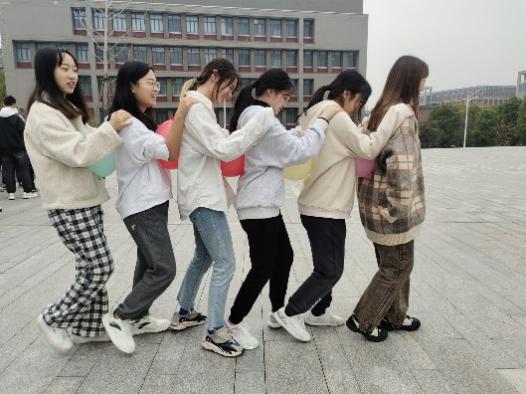 “齐心协力”项目对已经基本完成磨合的团队成员来说,难度并不算大,大家的配合极其默契。经过短暂的练习,比赛正式开始。各队伍第一位同学需要控制速度和方向,后面同学需要控制队员间距,在保证气球不掉落的前提下,绕过障碍物到达终点。最终,“大行宫”队获得第一名。