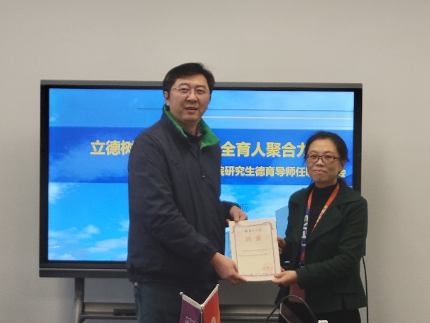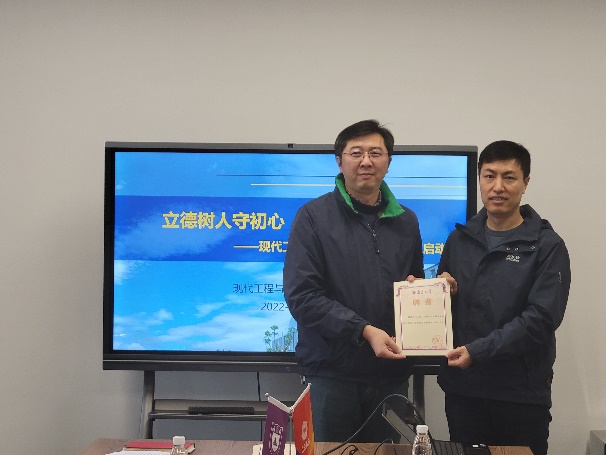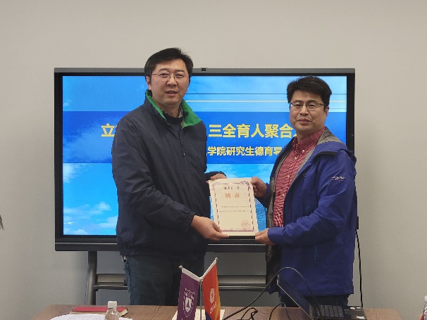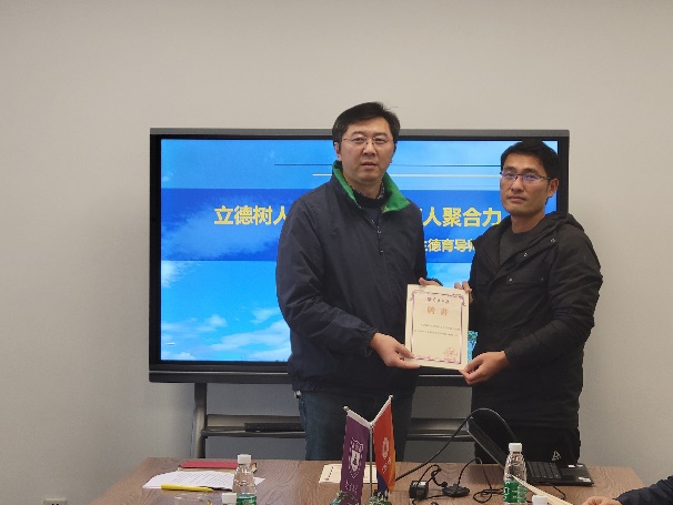 随后,吴迪经理宣读《betway88西汉姆联betway88西汉姆联2022年度研究生德育导师聘任情况》。通报了此次聘请了田野、胡伟、胡勇、周林、徐挺、聂越峰、何平、王峰、邓昱、祝名伟、闫世成11位老师为2022年度betway88西汉姆联研究生德育导师。臧文成书记、吴迪经理向本次选聘的德育导师颁发聘书并合影留念。