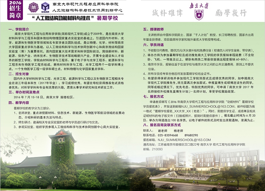 “人工微结构功能材料与技术”暑期学校招生简章见下图,点击可放大: