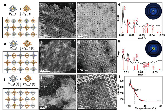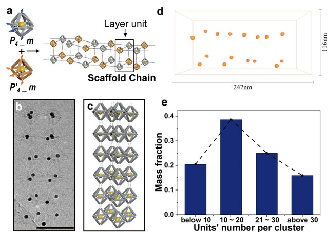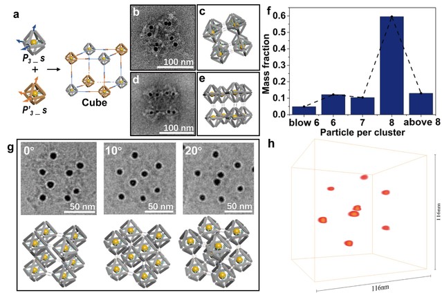 实验结果表明,不同维度上的多种团簇结构均能够按照预期形成,同时展现出可观的装配精准性和产率。在透射电镜(TEM)和扫描电镜(SEM)下不仅观察到了不同结构的组装产物,更论证了该编码策略的可靠性。在表征过程当中,研究人员还与上海光源、国家蛋白质科学中心以及betway88西汉姆联亚原子分辨中心的相关专家展开合作,借助X-射线小角散射(SAXS)、冷冻电镜(Cryo-EM)以及三维重构(3D-reconstruction)等多种技术手断多角度展现了胶体纳米粒子在不同结构中的排列方式和真实状态。