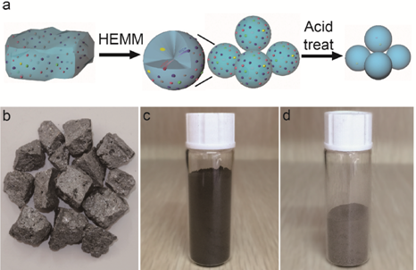 朱嘉教授近年来带领团队成员围绕这一问题开展了深入研究,创新性的将纳米技术引入到硅纯化工艺当中。利用纳米颗粒非常的比表面积和极小的半径可以将大量的杂志都暴露在表面,只需要通过酸洗就可以将杂志去除。朱嘉教授团队以工业粗硅(硅铁,硅含量84%)为原材料,通过高能球磨制备得到110nm 左右的硅纳米颗粒,进行酸洗等一系列步骤之后得到了纯度高于99.999%的硅纳米颗粒。相比于传统的硅提纯工业,该技术避免了高温高压以及对HCI和H2的大量消耗,在减少耗能的同时极大的降低了污染。同时通过该技术得到的高纯度硅为直径在80nm 左右的纳米颗粒,有着更广泛的用途,例如作为锂离子电池的负极。据测试,纯化后得到的硅纳米颗粒作为负极材料时获得了很好的循环及倍率性能。整个纯化过程低能耗低污染,为生产太阳能级硅提供了新思路,并且也为进一步降低太阳能发电的成本打下了坚实的基础。该技术已经申请专利。