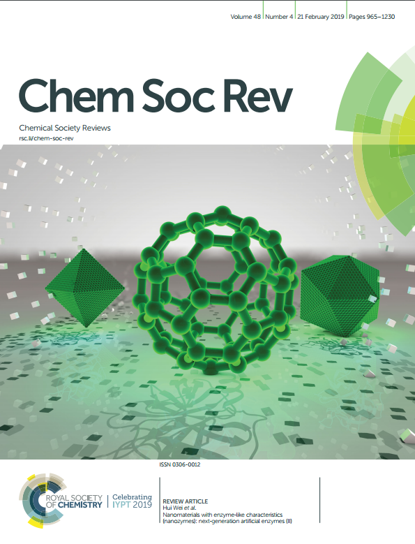 近日,betway88西汉姆联魏辉教授课题组再次在Chem. Soc. Rev.上,发表了题为Nanomaterials with enzyme-like characteristics (nanozymes): next-generation artificial enzyme (Ⅱ)的综述。这篇综述覆盖了各种类型的纳米酶及其在生物传感、诊疗和环境保护中的应用。除此之外,文章最后亦讨论了目前纳米酶发展所面临的一些挑战,并展望了其未来的发展方向。该综述还提供了较为丰富的补充信息,供读者进一步参考(Chem. Soc. Rev., 2019 , 48, 1004-1076)。本篇综述被选为Chem. Soc. Rev.第四期的封面文章(front cover)。