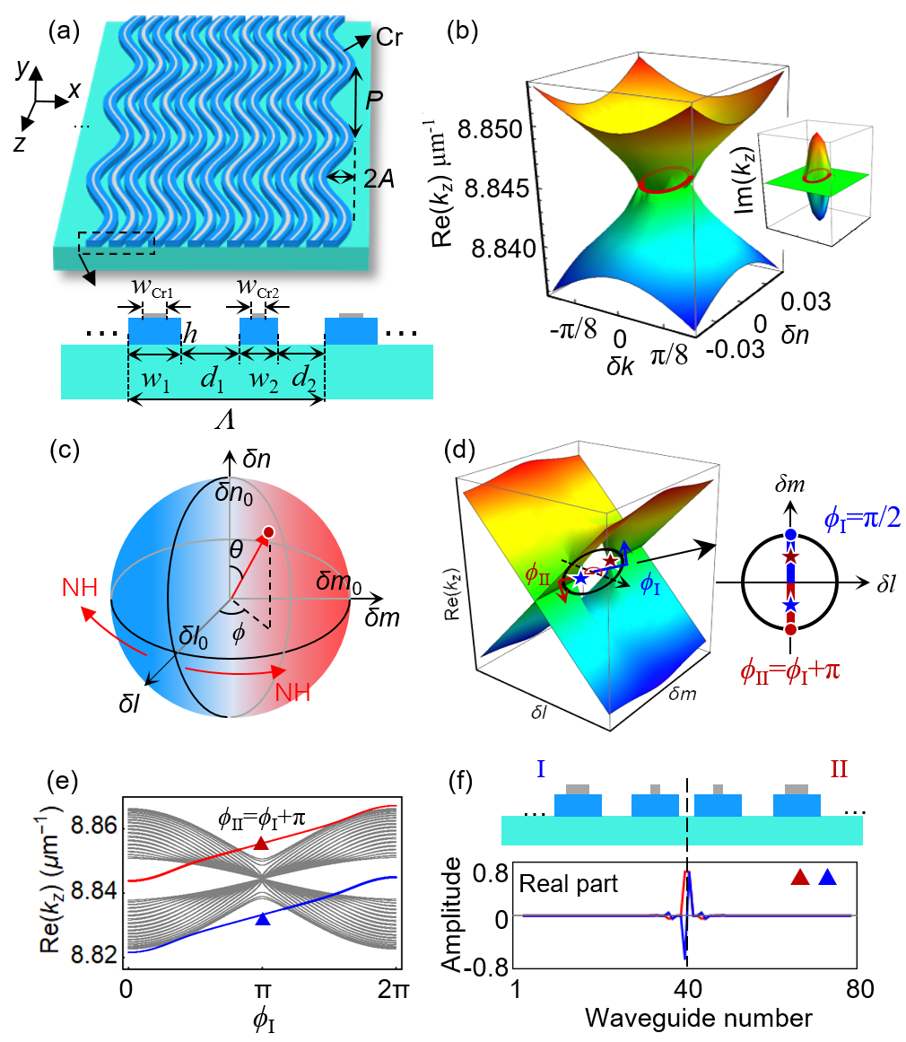 本研究以一维的非厄米硅光波导阵列为体系,其中非厄米调控是通过硅波导上的铬条(损耗)来引入。通过对波导宽度、间距及铬的宽度的精心调控,研究人员构建出