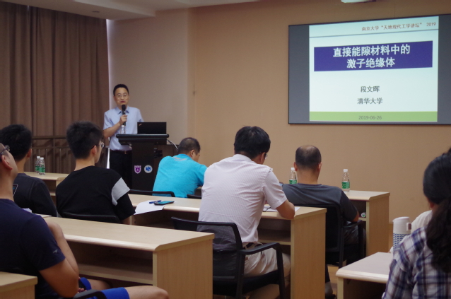2019年6月26日下午4点,“天地现代工学讲坛”第十一期第七讲在唐仲英楼B501顺利举行,本次报告我们邀请到清华大学物理系段文晖院士来校交流并做题为“直接能隙材料中的激子绝缘体(Excitonic insulators in direct-gap materials)”。报告由公司材料科学与工程系袁洪涛教授主持,固体微结构物理国家重点实验室主任陈延峰教授出席并代表学院师生向段文晖院士赠送讲坛纪念品。