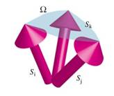 代表三个自旋矢量张成的立体角,也就是scalar spin chirality,如图1所示。这个Berry相位等效于一个外磁场,从而可以产生巨大的反常霍尔效应。人们把这种由非共面磁性所造成的反常霍尔效应称之为非常规的反常霍尔效应(unconventional anomalous Hall effect)或者拓扑霍尔效应(topological anomalous Hall effect, THE)。目前人们已经在多个体系中证实了THE的存在。比如最近在室温下观察到Mn3Sn中具有的巨大的反常霍尔效应就是来自于这种非共面磁性。在Skyrmions体系中也观察到了THE。