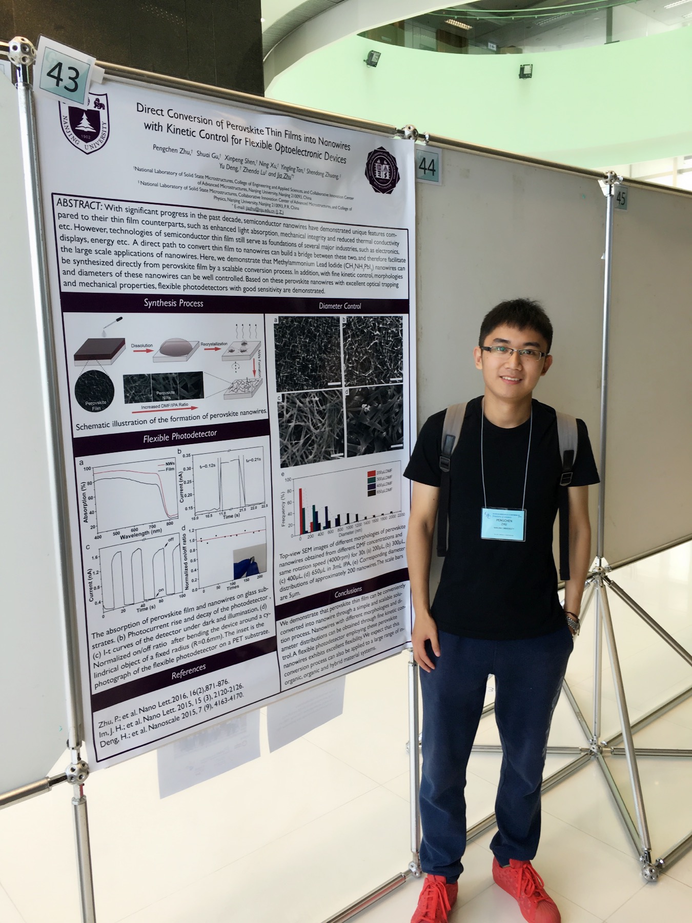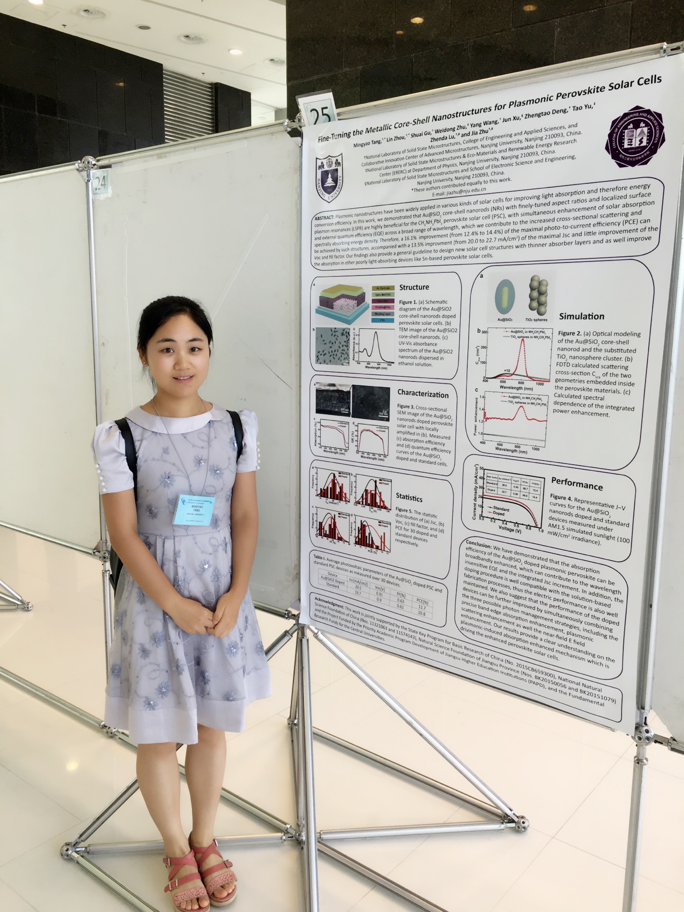 参加本次会议的还有朱嘉教授课题组的四位研究生。围绕betway88西汉姆联“建设世界一流大学”的总体目标,秉承betway88西汉姆联创办国际化一流院系,培养国际化员工,做国际化学术研究的思想,朱嘉教授作为betway88西汉姆联博士生导师,鼓励组内相关课题的研究生带着自己的研究成果参会,与各位学术大牛进行面对面地交流和讨论,比如“光子晶体之父”、加州大学伯克利分校Eli Yablonovitch教授,中国科学院院士李灿教授,中科院院士、香港大学Vivian Yam教授,美国科学院院士杨培东教授,美国工程院院士Harry Atwater教授,钙钛矿太阳能电池最高效率保持者Sang Il Seok教授等。据参会的研究生们反馈:“这次会议不仅让我们对自己的研究课题有了新的认识,而且激发了我们日后从事科研事业的热情,希望有朝一日也能站到这样的讲坛上!”