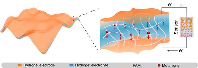 图1.类组织柔软的全凝胶电池的示意图
