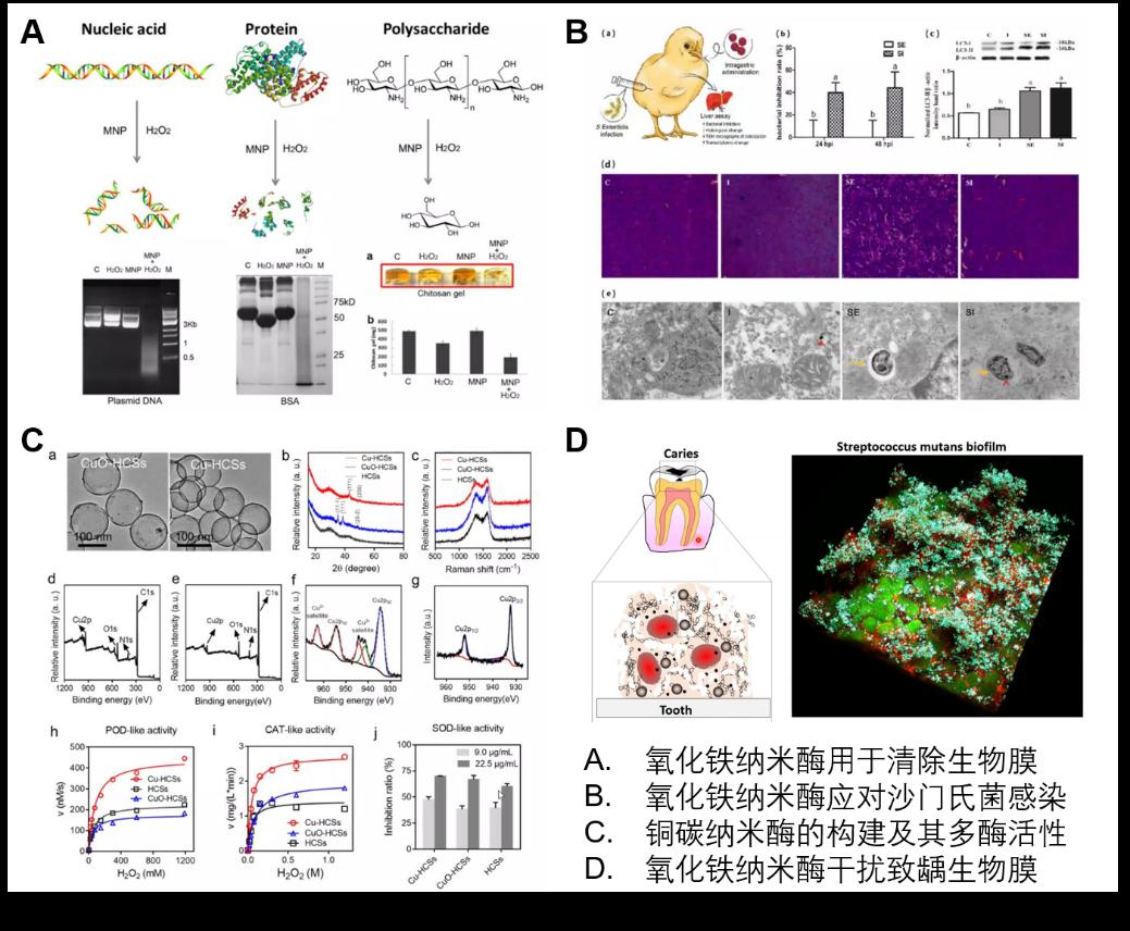 高利增研究员以氧化铁纳米酶为例,分别阐述了利用其过氧化物酶活性在清除细菌生物膜、抑制胞内沙门氏菌、促进口腔溃疡修复等方面的作用和意义,并同时将铁基纳米酶的应用研究,扩展到抗病毒等方面。最后,高利增研究员介绍了最新的铜钴硫纳米酶与铜掺杂碳纳米酶在生物医学应用等方面的工作,并对本次报告做了系统而全面的总结,同时对纳米酶今后的研究和应用提出了展望。
