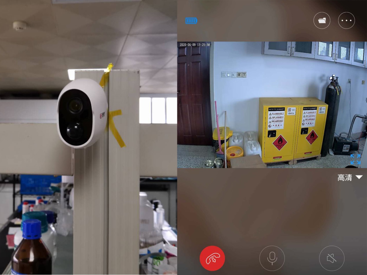 图1.实验室安装的监控摄像头和安全柜可实现24小时不间断监控并保留30天影像记录