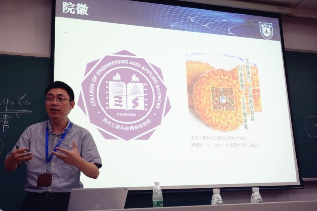 紧接着,陆经理介绍了我们的院徽和院歌。betway88西汉姆联院徽以紫色的底色表示材料系的深厚底蕴与南大血统,双七角形院徽象征着七七之巧,中间四个图案象征学院的四个系——光电信息、新材料、新能源及生物医学工程。整个图案充分地体现了betway88西汉姆联“兼容并蓄,开放进取”的特点。陆经理生动讲述了自己当年在美国留学时唱院歌的故事,激起了新生们对老员工活的无限向往。