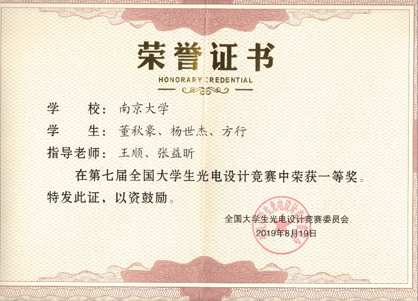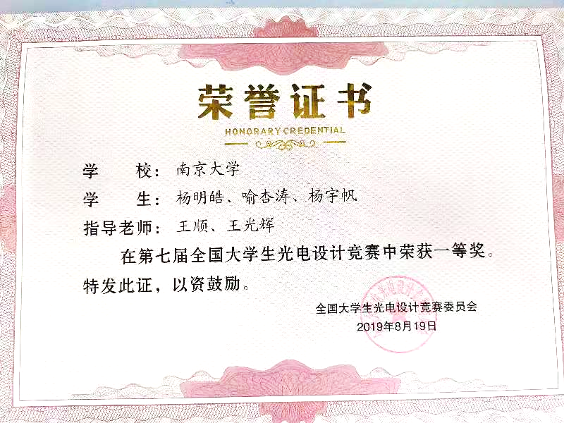 “一等奖”获奖证书