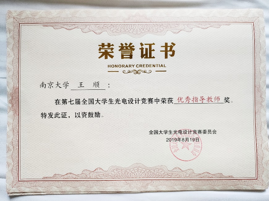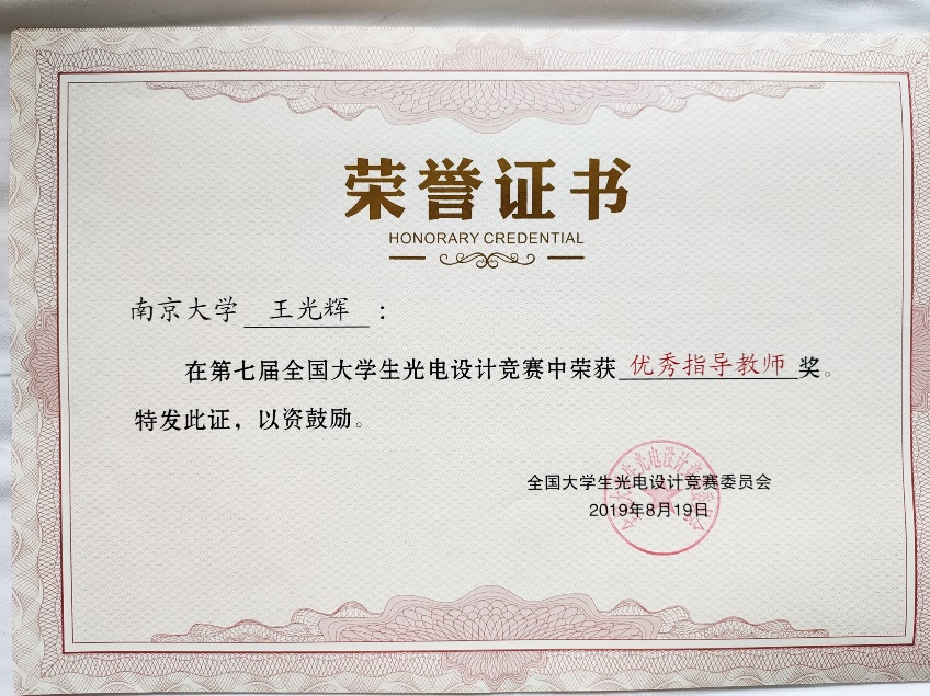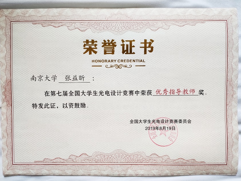 “优秀指导教师”荣誉证书