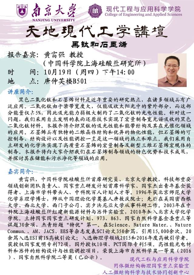 我们非常荣幸邀请到中国科学院上海硅酸盐研究所黄富强教授来公司作学术报告。欢迎各位老师和同学参加!报告详细信息见下: