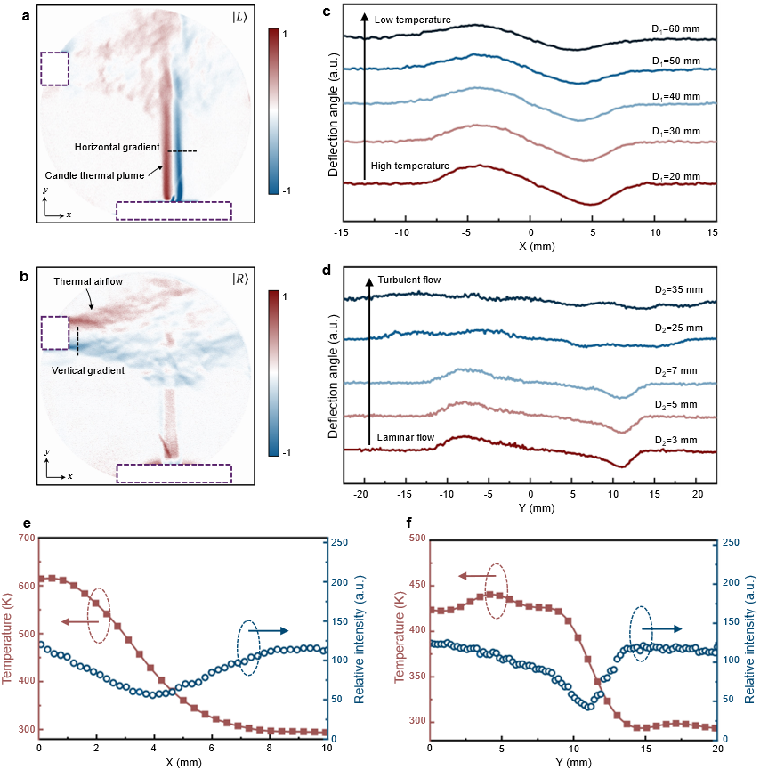 在流场信息的探测领域,研究者们已经开发出了各种技术来获取透明流场的信息。例如,探针法可为特定点的测量提供高时间分辨率;粒子图像测速(PIV)可有效跟踪流动模式并测量速度场;激光诱导荧光(LIF)能够对复杂的流动模式、湍流结构和化学反应进行可视化;传统的纹影技术可以通过光学方法获取一维流场信息;红外热成像可以非侵入性地探测温度,这对于研究流动表面的热效应非常有用。然而,尽管现有技术在透明流场的研究中各有独特优势,但它们也存在明显的局限性,例如具有侵入性、需要特定的示踪剂、依赖复杂的后处理算法或者仅呈现单一维度的信息等。