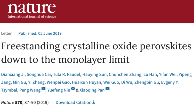 2016年,斯坦福大学Harold Huang课题组利用脉冲激光沉积技术在水溶性材料过渡层上生长钙钛矿氧化物薄膜,通过溶解过渡层的方式获得了自支撑的钙钛矿薄膜,为制备二维材料提供了新思路。然而,他们在尝试制备只有原子层厚度的超薄二维材料时碰到了难以克服的困难,使得钙钛矿氧化物二维材料的探索又陷入了困境。
