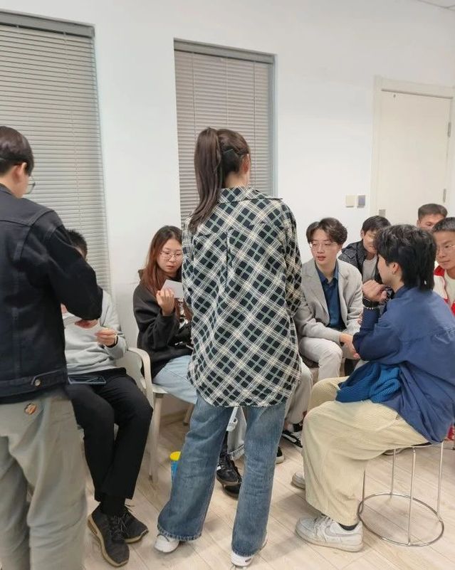 主席团、部长团发言 活动伊始,研会成员围坐一圈,气氛融洽和谐。首先,由研会执行主席俞颖和主席团成员王冉、张静蕾分别进行了自我介绍并表达了对新成员的欢迎和鼓励,随后各部门部长也依次进行发言。学长学姐们向新成员们介绍了研会的日常工作内容和学习生活经验,使得新成员们不仅可以了解自身的工作职责,也能更快地融入研会这个大家庭中,共同成长和进步。 热身活动-趣味自我介绍 为了确保接下来的活动顺利进行,也为了让研会成员们更好地相互了解,在正式开始破冰游戏之前进行了趣味自我介绍环节。与传统的自我介绍方式不同,这次活动要求每位成员在纸片上写下自己的姓名、一个随机地点以及最喜欢做的事情。待所有纸片被收集后,将纸片打乱并由成员随机抽取,重新组合成句子。当某人的名字被念出时,他/她需要做出相应的自我介绍。同学们面对各种令人哭笑不得的组合句子时总是能找到相应的有趣话题展开,这不仅增加了自我介绍的趣味性,也加深了彼此之间的印象。 破冰游戏 结束了热身环节后,迎来了本次破冰活动的游戏阶段。这一阶段设计了三个游戏:你画我猜、竞速绕口令以及听歌识曲。所有在场的研会成员根据抽到的扑克牌花色被随机分成四组,小组之间相互较量。我们特意在每个小组中引入了一张带有JOKER的身份牌,该角色拥有独特的任务和奖励,同时需要避免被其他小组成员发现身份。在这个过程中,每位成员都展示了自己独特的特点,而引入JOKER的角色设置增加了对身边同学的关注度。笑声不断,掌声不息,活动气氛十分热烈。 颁奖环节