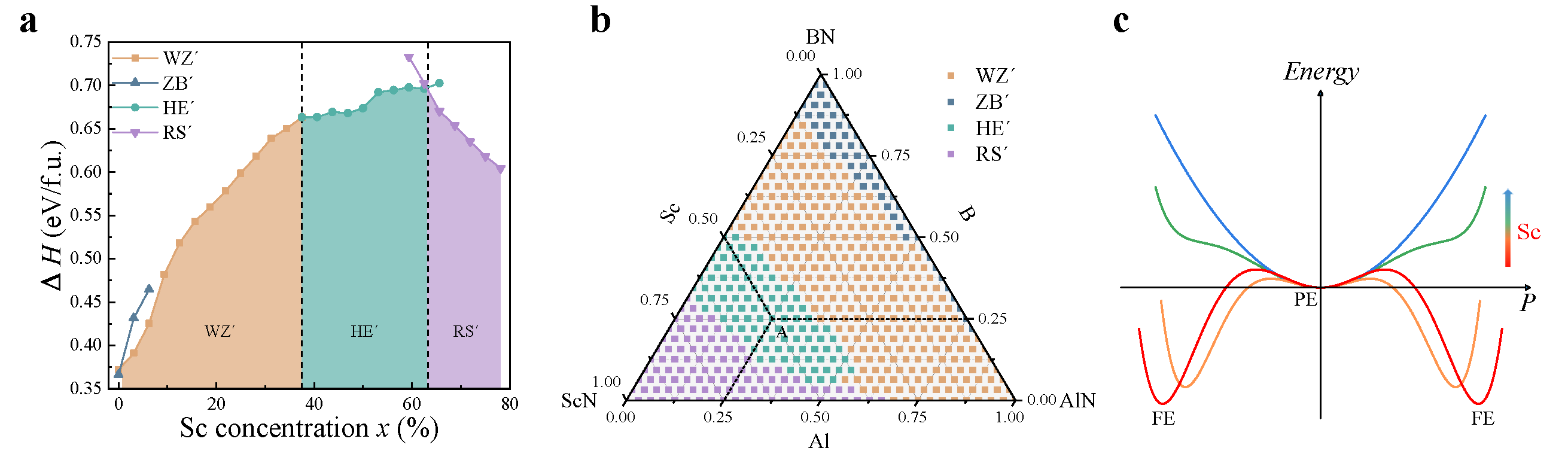 图 4 (Al,Sc,B)N的稳定性和相图。