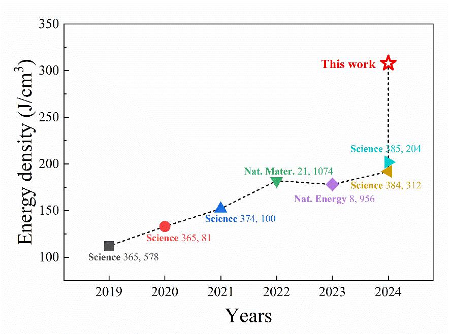 图 1 最近电介质薄膜的能量密度记录。