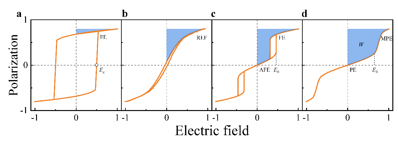 其中Pr = 0,因为P-E曲线中零电场下的极化与去除电场时的极化是相同的。