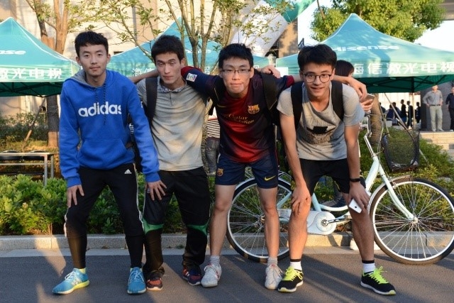 图2:男子4×100米接力冠军成员(从左至右:田硕秋、阿卜杜、陈博润、程璟)合影