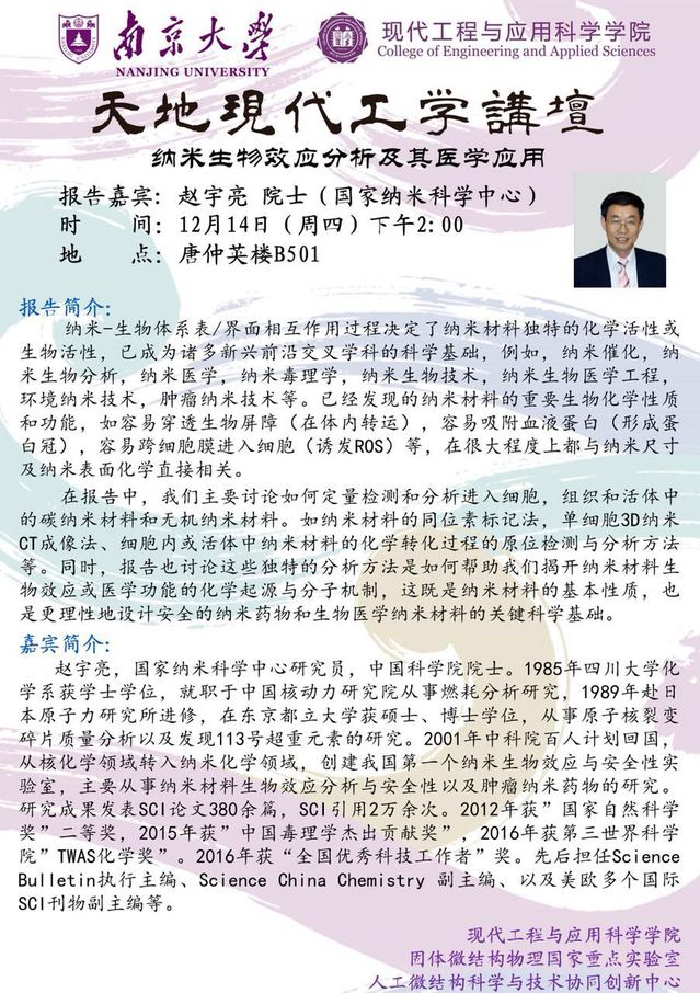12月14日国家纳米科学中心赵宇亮教授学术讲座
