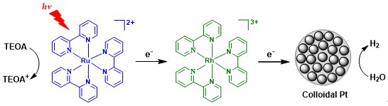 在能源和环境的双重困境下,太阳能的高效转换与存储成为科学家关注的焦点。基于金属络合物材料,利用太阳能分解水产生清洁燃料¾氢能,一直是新能源领域的研究热点之一。它具有简单、高效率、和灵活性等优点而备受瞩目。在这类人工光合成系统中,金属络合物扮演着自然界光合作用中类似叶绿素的角色,络合物吸收太阳能后形成激发态,为太阳能-化学能的转换提供驱动力。近年来,betway88西汉姆联的研究团队在针对太阳能转换研究中利用金属络合物材料开展了一系列工作:为解决常用的Ir(III)金属有机络合物材料难溶于水、稳定性差以及体系中使用的催化剂多为贵金属等科学问题,设计和开发了亲水性Ir(III)光敏材料、中性Ir(III)络合物材料、双核Ir(III)光敏材料及过渡金属催化剂,有效地提高了太阳能转换体系的稳定性和活性,同时也降低了体系的成本。
