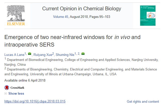 4月6日,“Current Opinion in Chemical Biology”期刊在线发表了生物医学工程系Lucas A Lane副教授的综述论文“Emergence of two near-infrared windows for in vivo and intraoperative SERS(用于体内和术中SERS的两个近红外窗口崭露头角)”。该杂志是化员工物学领域的顶级综述性期刊,2016年影响因子7.889。这也是Lane教授以betway88西汉姆联为第一单位发表的第一篇论文。论文全文见:https://doi.org/10.1016/j.cbpa.2018.03.015。