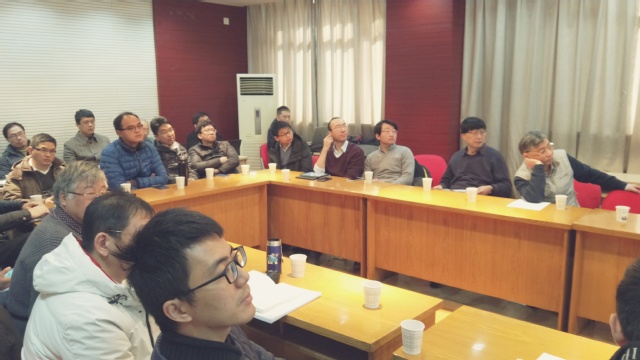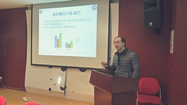 李老师首先向与会老师介绍了2017年度光学系整体发展情况,报告了过去一年中量子电子学与光学工程系(简称光学系)取得的主要成绩和相关数据,并回顾了光学系和光学工程学科在一年中经历的重要事件。2017年,量子电子学与光学工程系在研项目39(项科技部8, 国家自然科学基金委19, 省级项目6, 其他项目6),实际在系经费10401.4万元。其中新申请获得8项,实际新增经费6302万元(包括科技部重点研发计划一项,课题三项;基金委重点仪器专项一项)。发表南大第一单位或第一通讯单位论文95篇,其中SCI论文82篇,EI、国内核心13篇。其中包含Nat. Commun. 1篇, Adv. Mater. 3篇,Nano. Lett. 1篇。申请专利54项,授权专利25项。李老师在总结光学系过去一年中在项目申请、论文发表、人才建设以及科研教学方面取得的成果和存在的问题之后,专门针对目前在海外招聘、吸引优质生源、特别是严峻的学科评估形势等方面做了深入的分析,并跟与会老师讨论了发展目标和相关举措。
