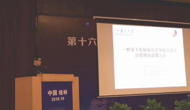 图7:张超硕士研究生作题为“一种先验知识引导的自适应压缩感知成像方法”的口头报告