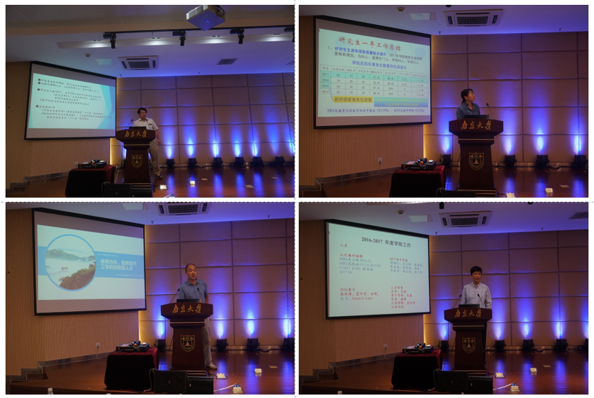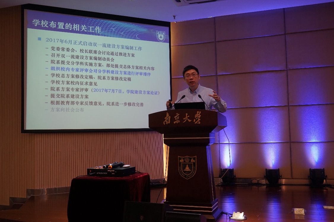 执行经理陆延青教授做了名为《群策群力,建设国内领先、国际一流的“材料与工程科学”学科群》的报告。陆经理就学校双一流建设近况、学院双一流建设思路、新学年院行政工作重点以及总结与展望多个方面对双一流建设背景下的学院工作做了详细阐述。