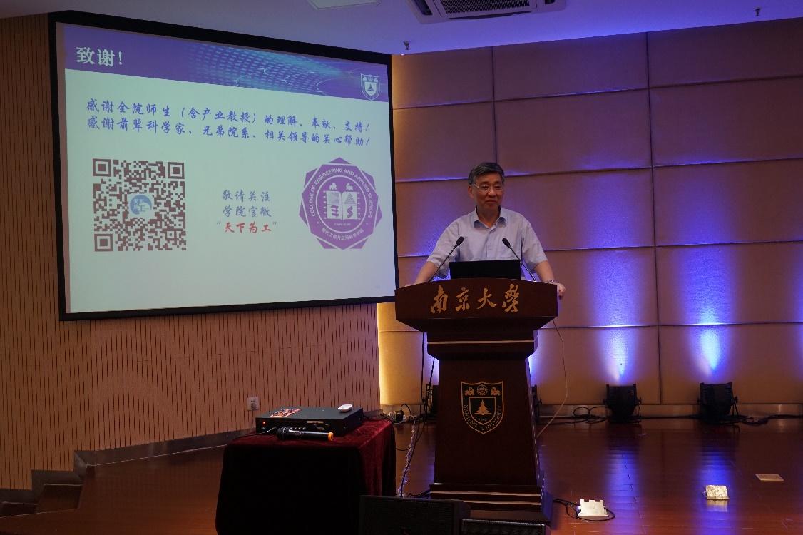 最后,祝世宁院士做了总结发言,祝院士肯定了学院去年的发展,同时指出在发展过程中也存在很多挑战。在高等教育改革的大环境下,新的压力不断产生。他希望在双一流建设和学院新大楼即将落成的机遇下,提高生源质量,做好公共平台建设,助推学院的科研工作。
