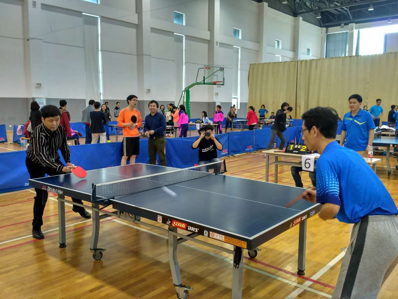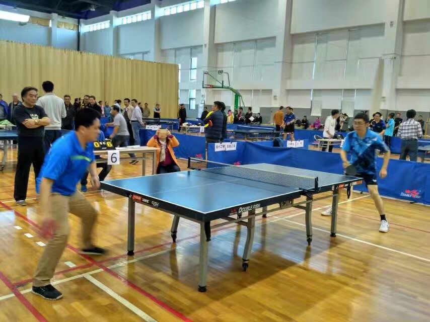 图2:乒乓球赛场上,公司何平副教授(右)