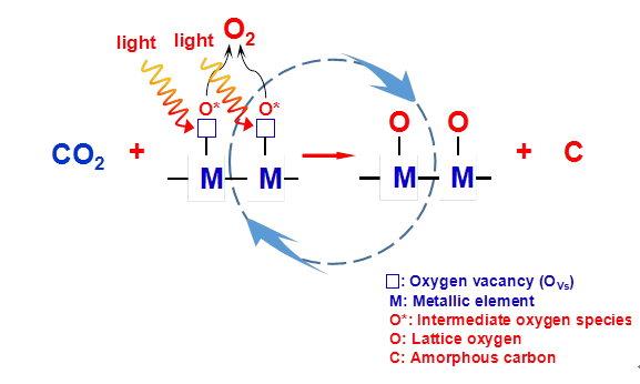 保护环境是实现人类社会可持续发展的基本前提,消除气态氧化物分子污染物,如COx (CO2,CO),SOx (SO2,SO3),NOx (NO,NO2) 等,对构建和谐生态环境具有重要意义。传统的氧化物分子转化技术,需要使用还原剂和昂贵的贵金属催化剂,因而成本和能耗较高。光催化利用太阳光激发半导体材料产生光生电子-空穴对驱动氧化还原反应,被认为是一种潜在的低成本、低能耗催化反应技术。然而,由于氧化物分子通常是热力学稳定的,这导致直接分解这一类分子为单质十分困难。如何抑制中间产物逆反应过程是实现氧化物分子分解的关键所在。