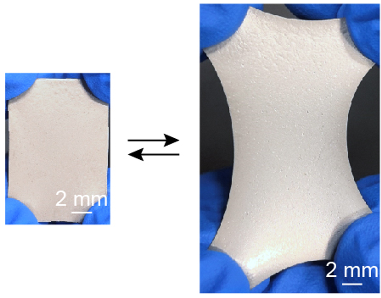 研究团队通过系统表征揭示了金属凝胶优异性能与其结构设计之间的内在联系。二维广角X射线散射与变温傅里叶变换红外光谱表明,动态氢键与高分子链的可逆取向行为共同赋予了高分子网络优异的力学性能。通过对比循环拉伸前后羰基红外光谱特征峰的偏移值,研究团队发现金属凝胶中的静电相互作用在整个变形过程中始终保持稳定,发挥着分子锚点的关键作用。同时,扫描电子显微镜的横截面照片也证明,液态金属连续体在反复循环拉伸过程中保持结构完整性。