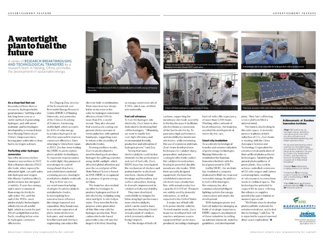 近日,Nature主刊出版“聚焦中国清洁能源”(Spotlight in Clean Energy in China)特刊,重点展示了我国在降低碳排放、推动绿色发展方面的重要贡献。特刊以“运筹帷幄,‘加油’未来”(A watertight plan to fuel the future)为题,重点报道了中科院院士邹志刚带领的betway88西汉姆联环境材料与再生能源研究中心团队在清洁能源制氢、氢能高效利用基础研究及产业化进展。