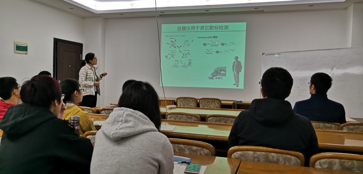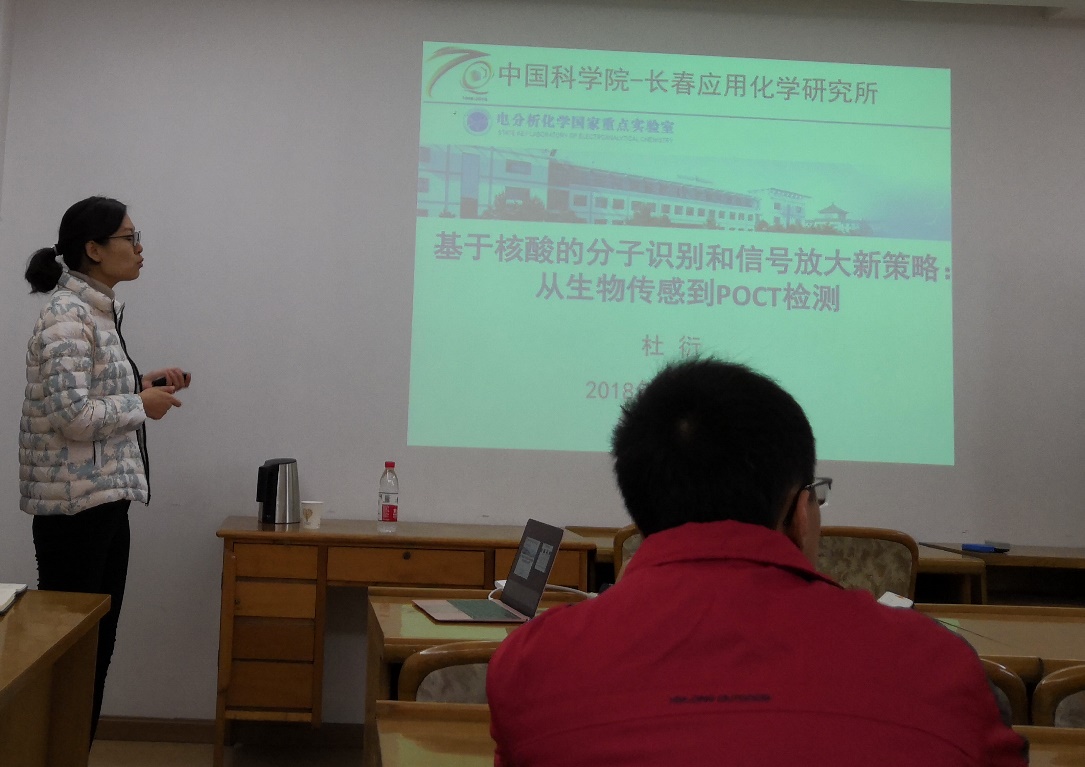 2018年11月8日,中国科学经理春应用化学研究所电分析化学国家重点实验室杜衍研究员应魏辉教授邀请来公司交流访问,并做了题为“基于核酸的分子识别和信号放大新策略:从生物传感到POCT检测”的学术报告。报告中,杜衍研究员主要讲述了基于生物大分子的分子识别,以及智能信号放大和传输系统在分析化学和便携化分析领域的应用研究,并且着重阐述了其研究组致力于解决“便携式分子诊断新方法的研发和应用”这一生命健康问题所做出的努力。