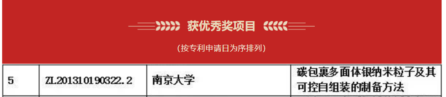 近日,江苏省人民政府发布《关于公布首届江苏专利奖的决定》(苏政发〔2023〕47号),公布了首届江苏省专利奖获奖名单。betway88西汉姆联唐少春教授作为第一发明人的1项国家发明专利“碳包裹多面体银纳米粒子及其可控自组装的制备方法(专利号ZL201310190322.2)”获评首届江苏专利优秀奖。该专利的发明人还包括公司孟祥康教授,以及公司2013届本科毕业生李谷骏、赵伟博、施巍啸、林烈雄。