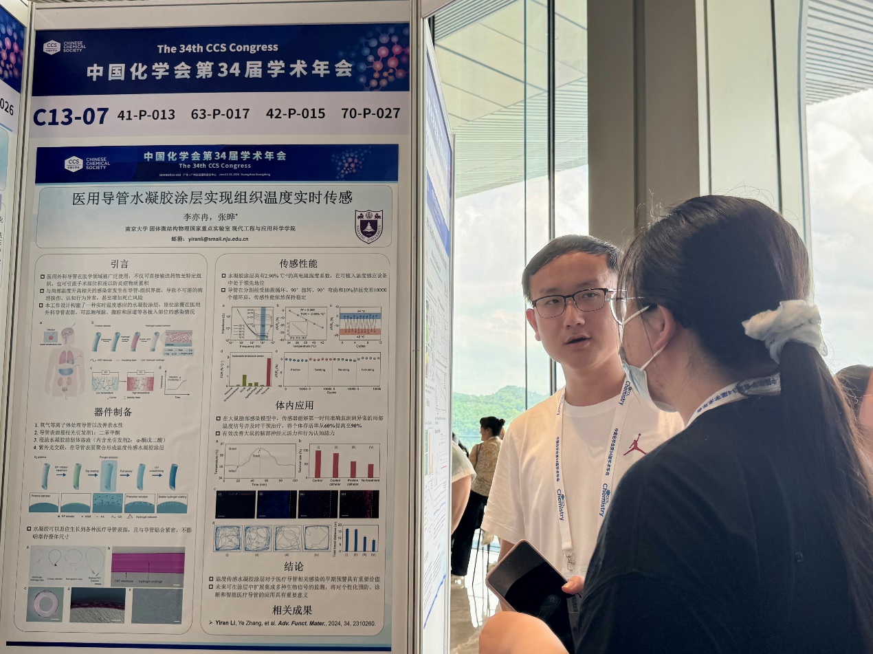 博士生李亦冉的“医用导管水凝胶涂层实现组织温度实时传感”墙报获得“功能材料化学”分会优秀墙报奖。